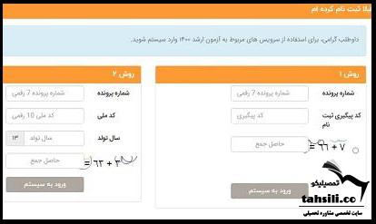 روش دوم : بر اساس شماره پرونده و کد پیگیری ثبت نام